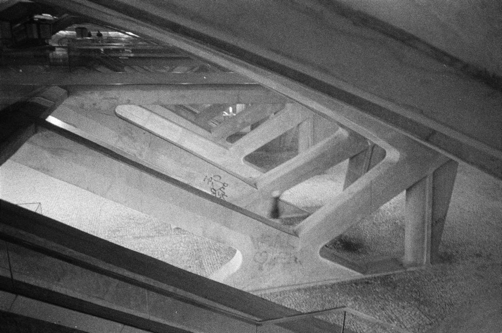 I had this roll of Kodak Tmax P3200 sitting in my fridge for absolute ages. So long that I couldn’t remember quite when or why I bought it. It’s not like I have much opportunity for night photography. Eventually I loaded it in my dad’s old Chinon and lugged the brick of a camera with me to Lisbon back in January. My hotel was just around the corner from Oriente station, so it was easy to go for a walk there at night and not have to carry the heavy camera around for too long.
