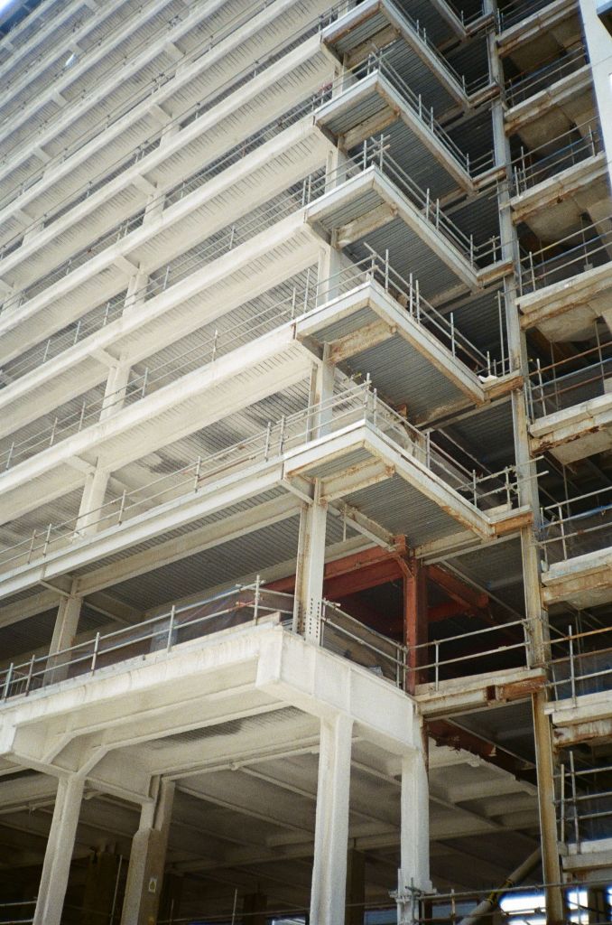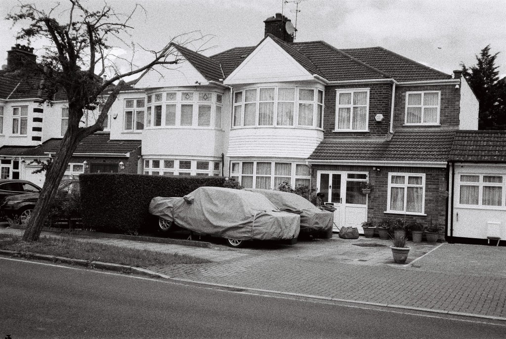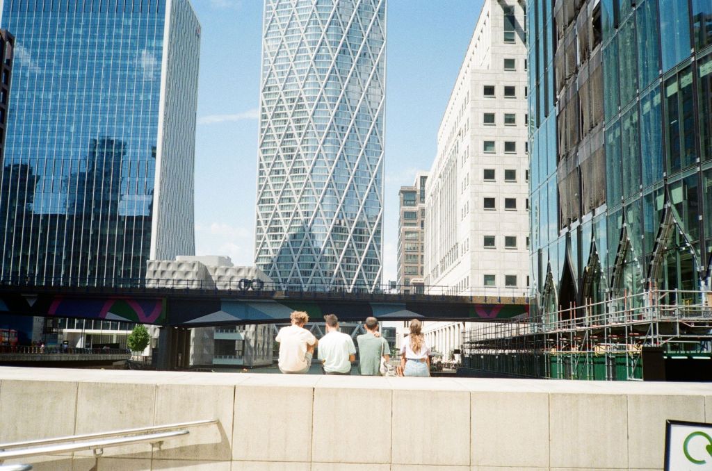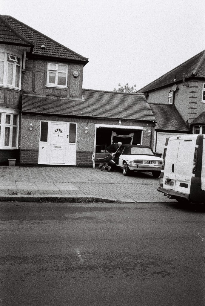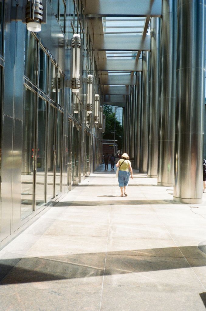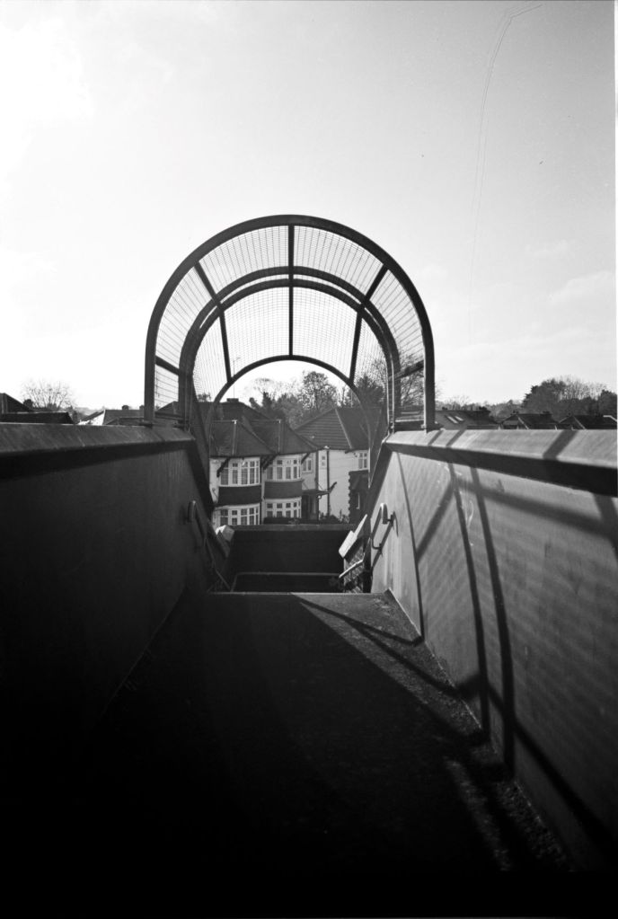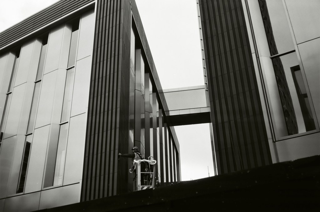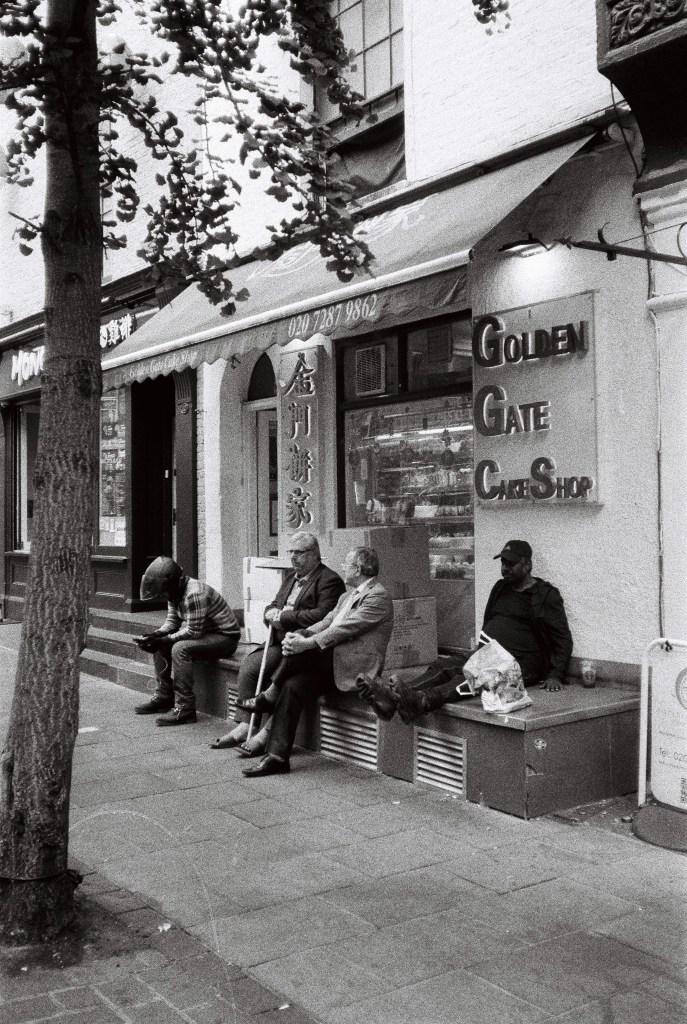 The sun is finally out. It drags me by feet out from under the heavy blankets of clouds that’s dominated our skies for endless weeks. A long walk begs; camera in pocket. I set off from Baker Street. I walk a little way down some mews, where the backs of buildings throw jagged grey triangles against the blue sky. Fasting moving clouds with somewhere else to be roll by. Somewhere in a security booth a guy monitoring local CCTV cameras is wondering what I’m looking at. I stand my ground as a construction worker approaches from down the way. “Hey.”