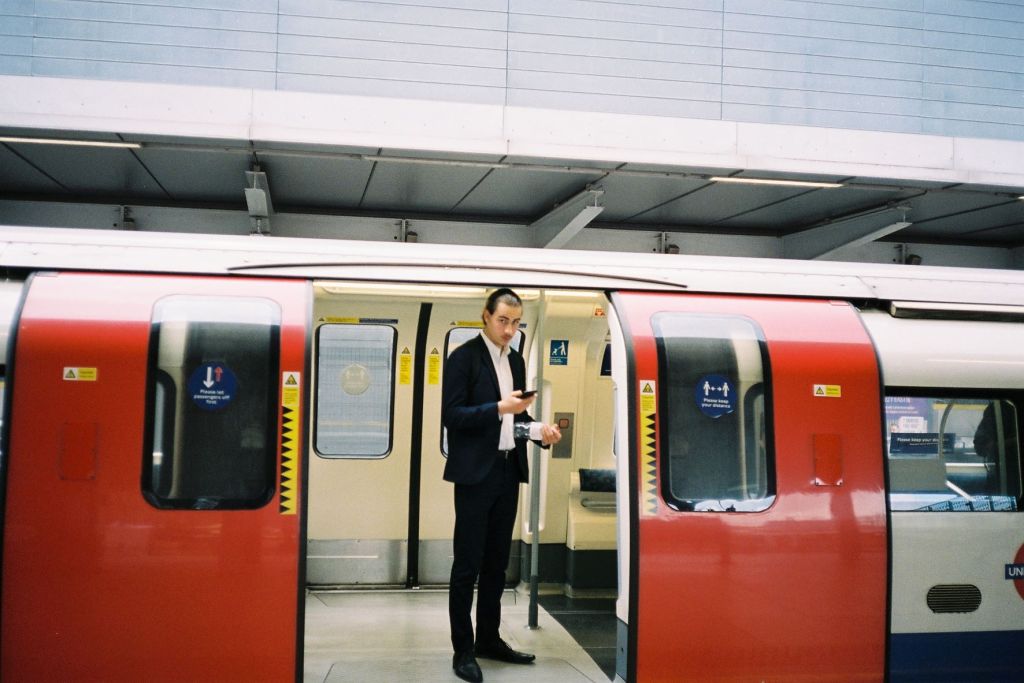 A lady with neat white curls has the paper spread out in front of her like a map. She’s studying it tight-lipped and frowning. Can she find us a way? Next to her, a long-lashed teenager’s thousand yard stare goes straight through me. She smiles briefly at a memory of a thing. As we pull into the next station a man shuffles off our carriage looking hugely lost. The legs and sleeves of his clothes are too long. His shoes too big. His hat askew. His origin story looks a few thousand miles away. It may as well be beyond Betelgeuse, it’s that easy to feel alien in the city. Been there, done that. The door closes. He’s on his own now.
